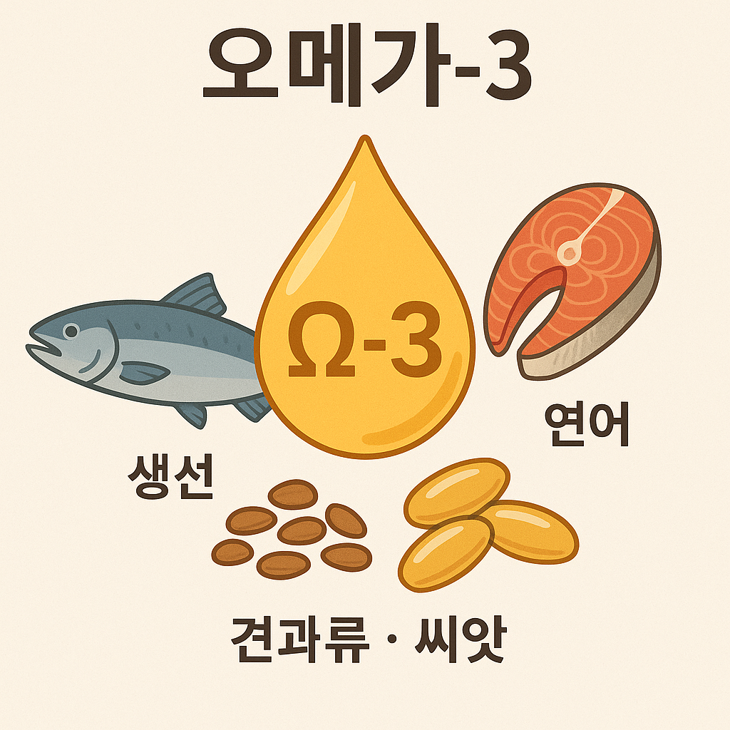 이 균형이 깨지면 면역계 이상, 관절 통증, 고혈압, 비만 등의 질환이 발생하기 쉽습니다. 식단에서 튀김, 가공육, 인스턴트식품을 줄이고, 등 푸른 생선(고등어, 연어, 정어리)이나 견과류를 늘리면 자연스럽게 균형이 잡힙니다.