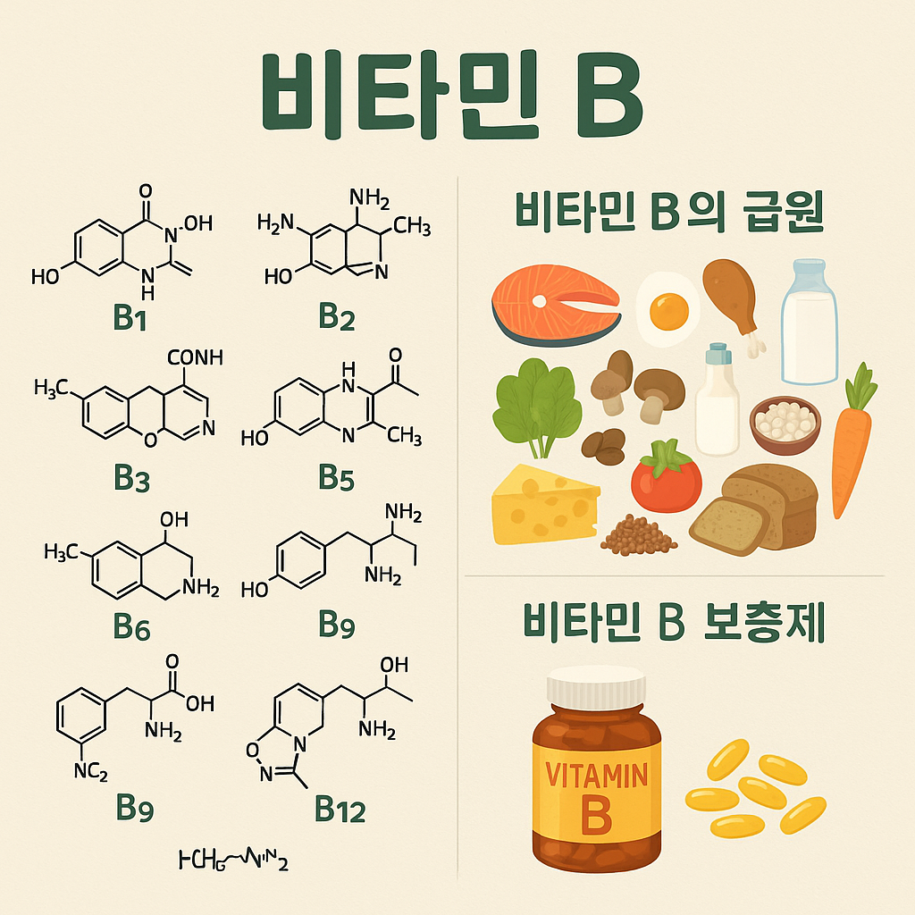 비타민 B군은 우리 몸의 에너지, 신경, 면역, 혈액, 피부까지 다양한 영역에서 작용하는 ‘기초 영양의 핵심’입니다. 단순히 피로를 푸는 보조제가 아니라, 건강의 기초를 지탱하는 필수 요소입니다.